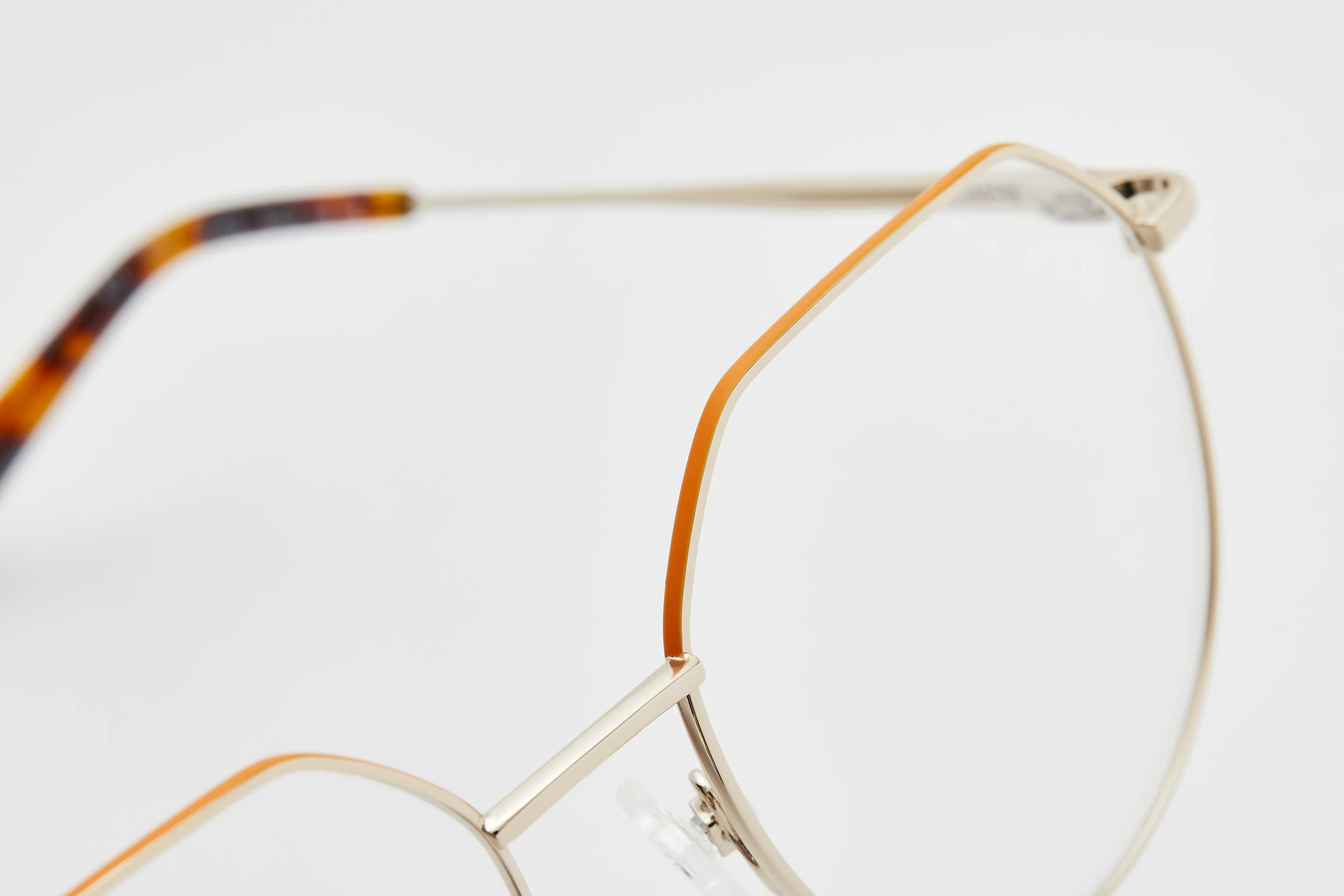 Vintage tort temples and pop colour upper block detail